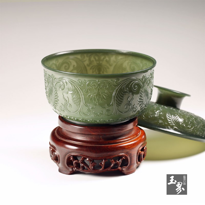 由于薄胎器皿的制作非常精细,所以选材时一定要选用质地致密坚韧、无绺裂的玉材。然而薄胎器皿的选材又有别于其他品种的玉器,薄胎器皿所用的材料不一定越白越好,实践证明,白玉做薄后,产品往往失于苍白、单薄,反而是青白玉与青玉制作出的薄胎玉器,一者色泽素雅、清丽秀逸;一者韵致内敛、古朴隽永,倍显端庄、高雅之气。